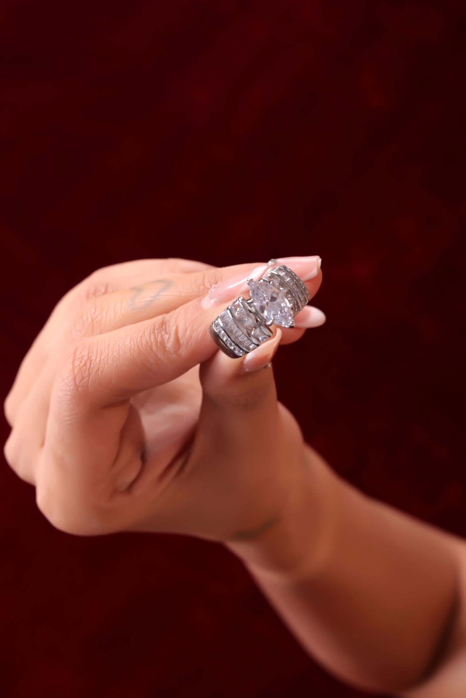 Each diamond is hand-selected for its exceptional clarity, color, and cut, ensuring a ring that shines with brilliance and prestige. The marquise-cut diamond, with its elongated silhouette and pointed ends, creates the illusion of a larger stone, making it the perfect choice for those who love bold yet refined statement pieces. The channel-set diamonds along the band provide a continuous sparkle, further enhancing the ring’s luxurious allure.